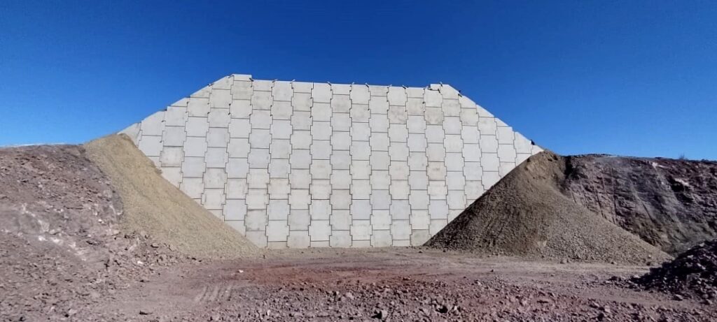 ubicado en Vicuña, IV Región.  El muro de 14,0m de altura fue calculado para camiones de 72 ton operativas. La obra